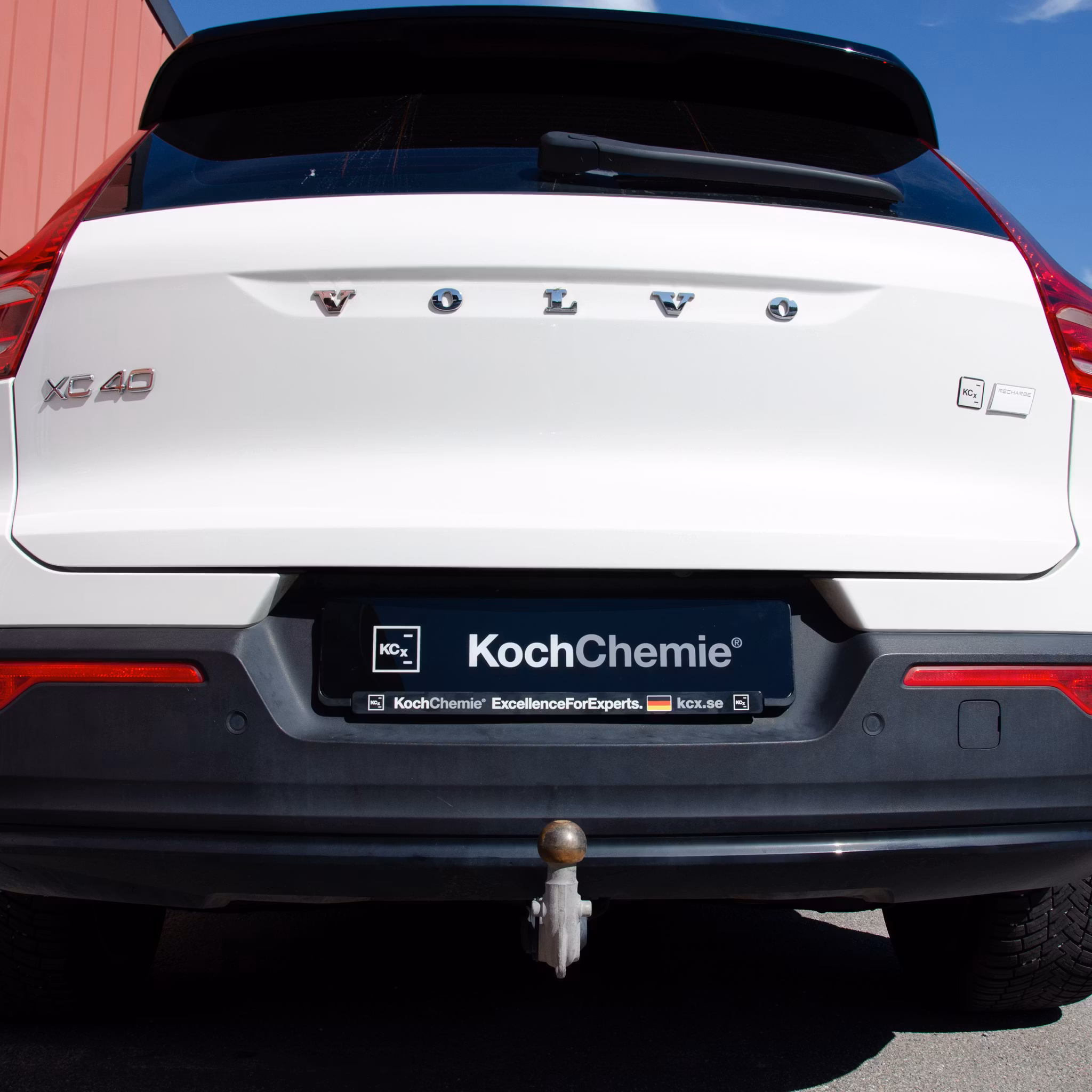 En stilren och snygg skylt med Koch-Chemies logga för att täcka registreringsnumret.